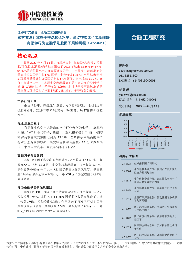 【中信建投证券】【20250412】高频和行为金融学选股因子跟踪:农林牧渔行业换手率达极值水平,流动性类因子表现较好-31页