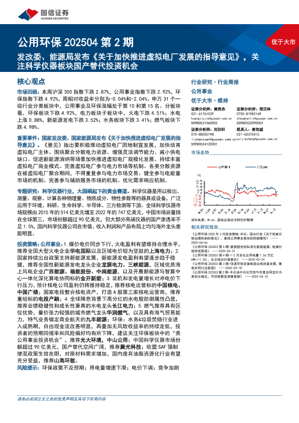【国信证券】【20250416】用环保行业202504第2期:发改委、能源局发布《关于加快推进虚拟电厂发展的指导意见》,关注科学仪器板块国产替代投资机会-28页