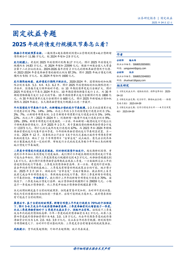 【国盛证券】【20250412】2025年政府债发行规模及节奏怎么看?-12页