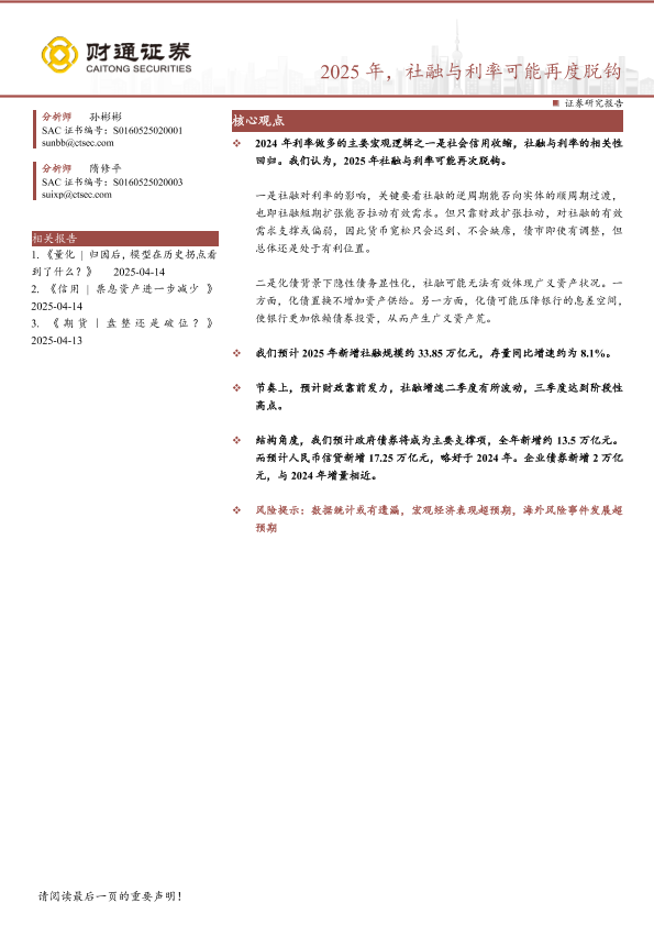【财通证券】【20250416】2025年,社融与利率可能再度脱钩-14页