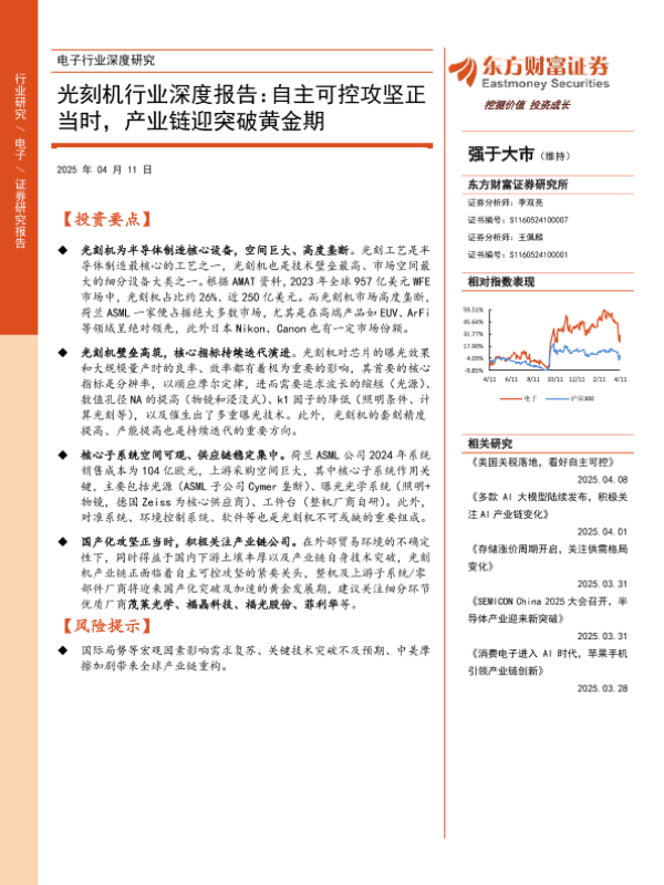 【东方财富证券】【20250411】光刻机行业深度报告:自主可控攻坚正当时,产业链迎突破黄金期-45页