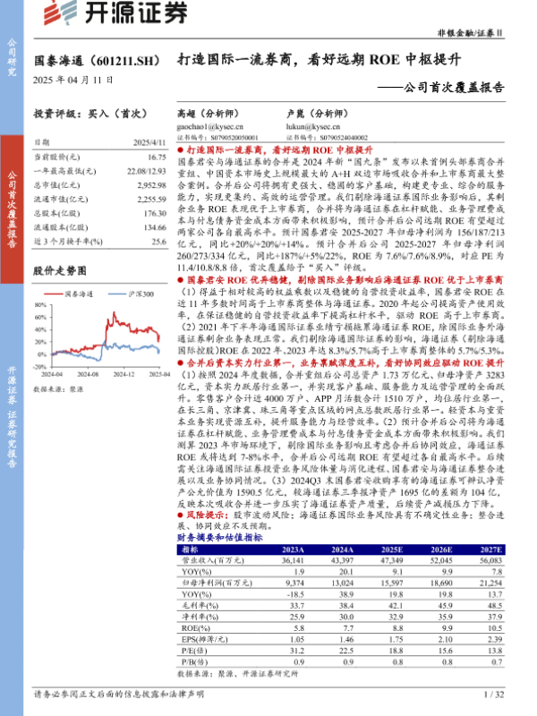 【开源证券】【20250411】国泰海通公司首次覆盖报告:打造国际一流券商,看好远期ROE中枢提升-32页