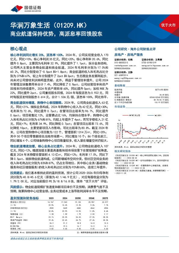 商业航道 物业管理 股东回报 财报点评 华润万象生活