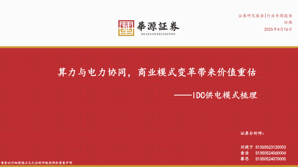 【华源证券】【20250416】环保行业IDC供电模式梳理:算力与电力协同,商业模式变革带来价值重估-33页