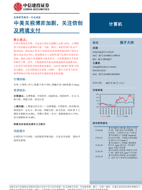 【中信建投证券】【20250413】计算机行业动态:中美关税博弈加剧,关注信创及跨境支付-11页