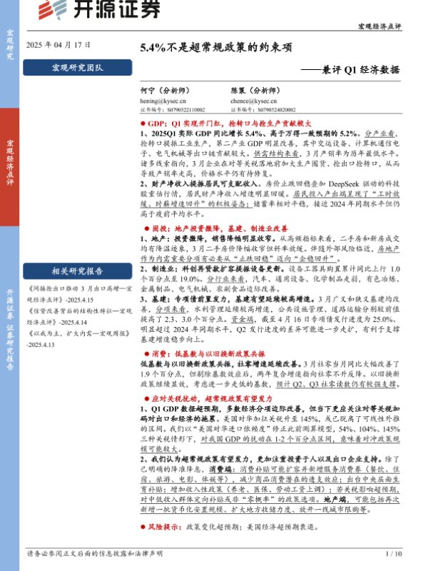 【开源证券】【20250417】兼评Q1经济数据:5.4%不是超常规政策的约束项-10页