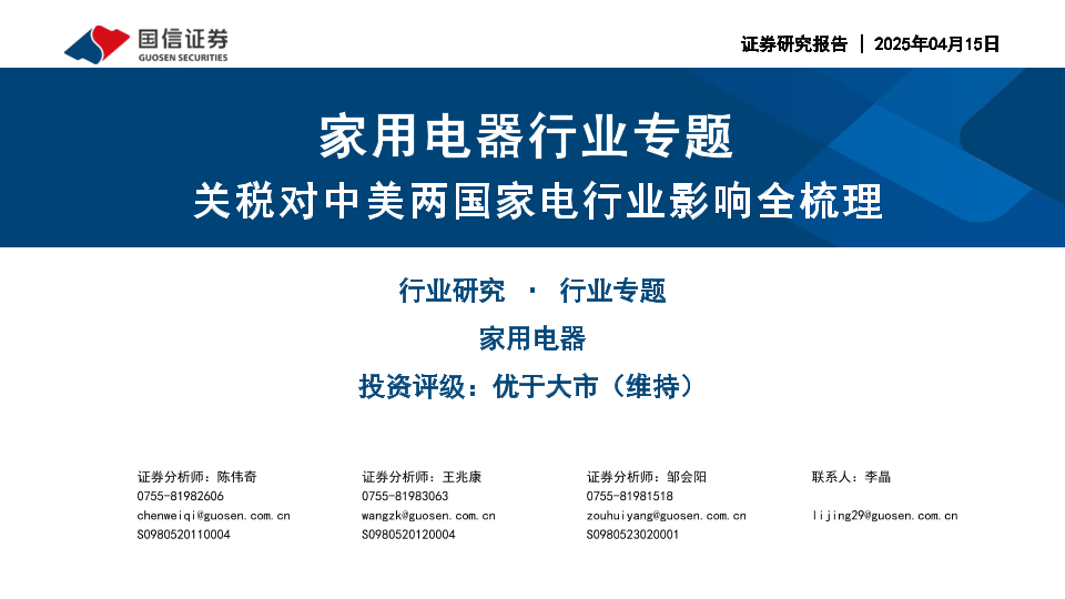 【国信证券】【20250415】家用电器行业专题:关税对中美两国家电行业影响全梳理-16页