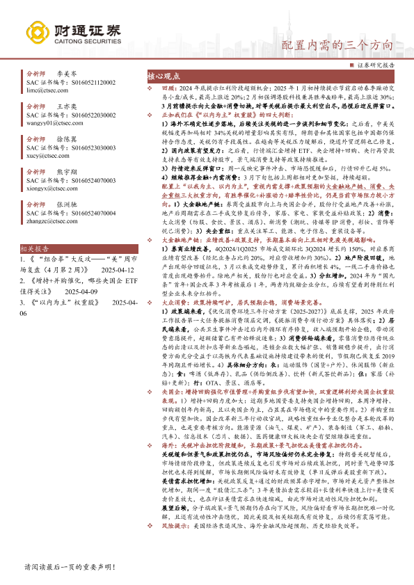 【财通证券】【20250413】配置内需的三个方向-16页
