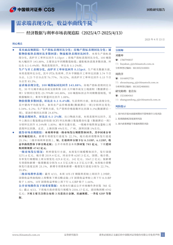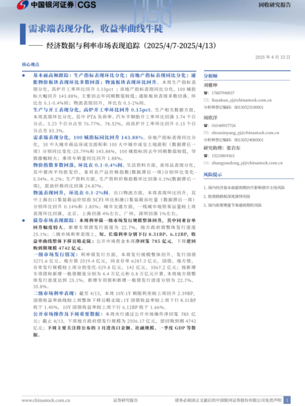 【银河证券】【20250413】经济数据与利率市场表现追踪:需求端表现分化,收益率曲线牛陡-12页