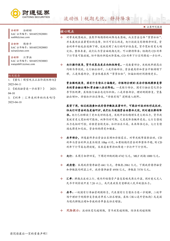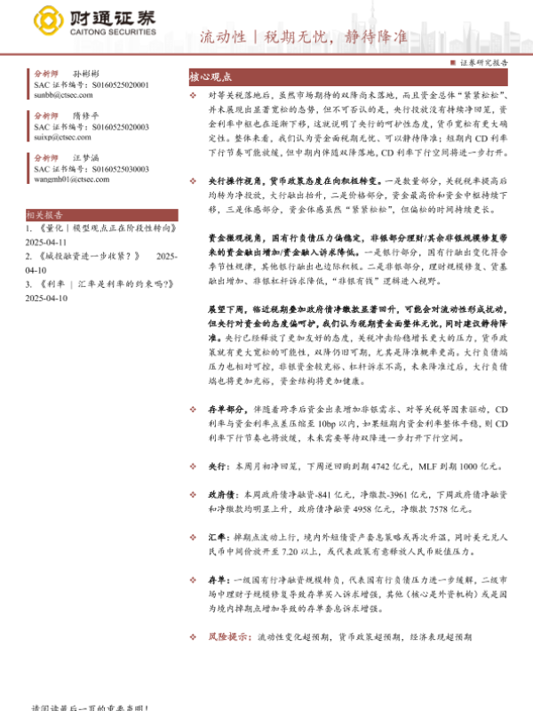 【财通证券】【20250412】流动性|税期无忧,静待降准-21页