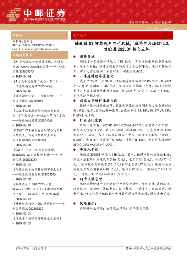 【中邮证券】【20250413】陆股通2025Q1持仓点评-13页