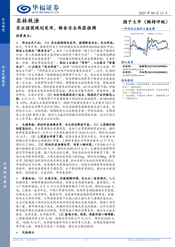 【华福证券】【20250413】农林牧渔行业定期报告:农业强国规划发布,粮食安全再获强调-13页