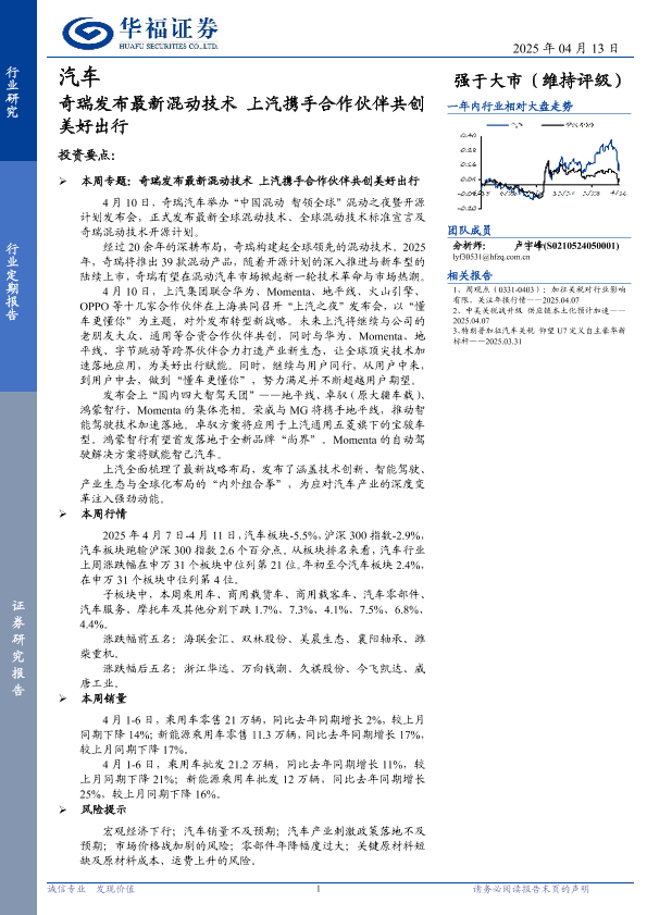 【华福证券】【20250413】汽车行业定期报告:奇瑞发布最新混动技术,上汽携手合作伙伴共创美好出行-12页