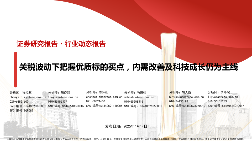 【中信建投证券】【20250414】汽车行业动态报告:关税波动下把握优质标的买点,内需改善及科技成长仍为主线-30页
