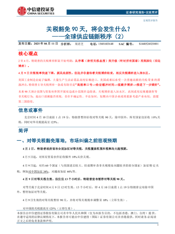 【中信建投证券】【20250411】全球供应链新秩序(2):关税豁免90天,将会发生什么?-12页