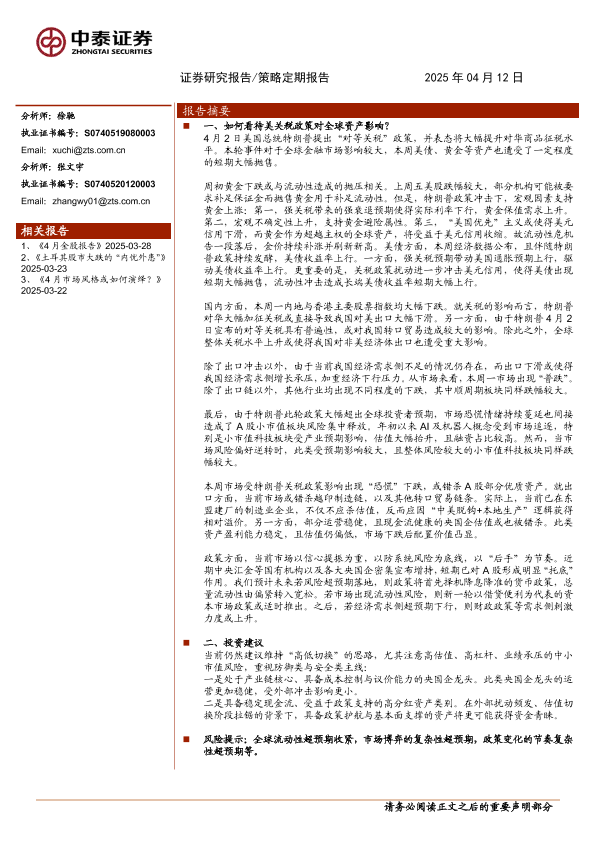 【中泰证券】【20250412】如何看待美关税政策对全球资产影响?-12页