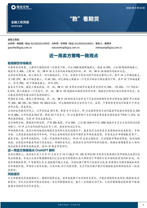 【国金证券】【20240425】数”看期货:近一周卖方策略一致观点-10页