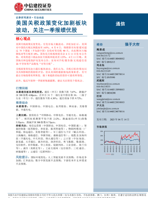 【中信建投证券】【20250414】通信行业动态:美国关税政策变化加剧板块波动,关注一季报绩优股-12页
