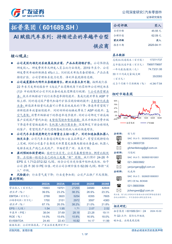 【广发证券】【20250411】拓普集团(601689)AI赋能汽车系列:持续进击的卓越平台型供应商-37页