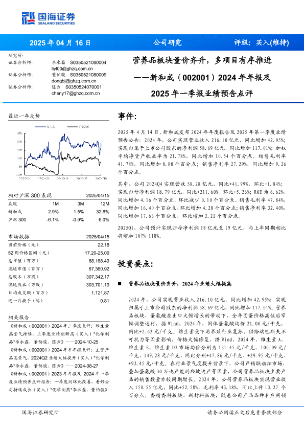 【国海证券】【20250416】新和成2024年年报及2025年一季报业绩预告点评-10页