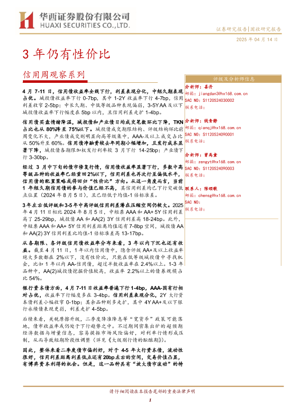 【华西证券】【20250414】信用观察系列:3年仍有性价比-17页