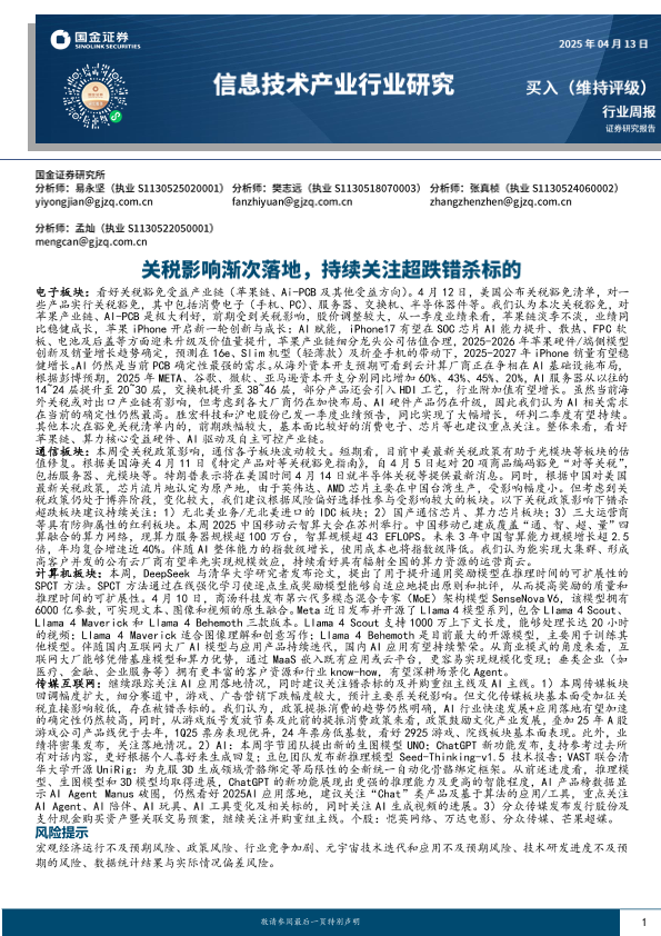 【国金证券】【20250413】信息技术产业行业研究:关税影响渐次落地,持续关注超跌错杀标的-19页