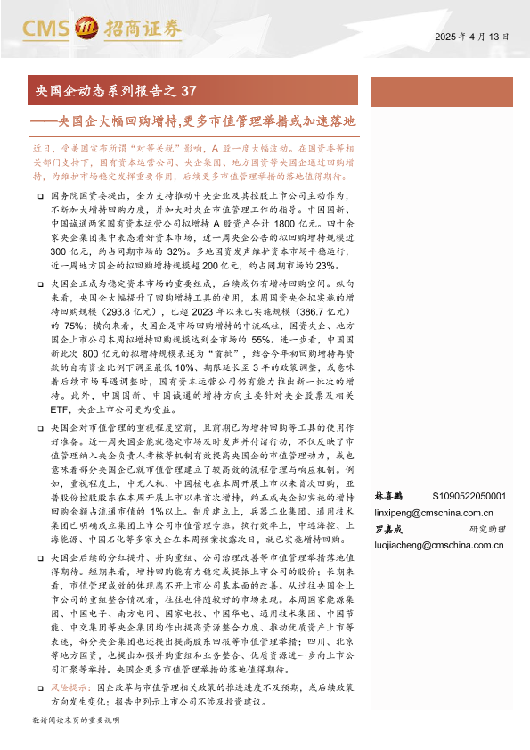 【海通证券】【20250413】央国企动态系列报告之37:央国企大幅回购增持,更多市值管理举措或加速落地-34页