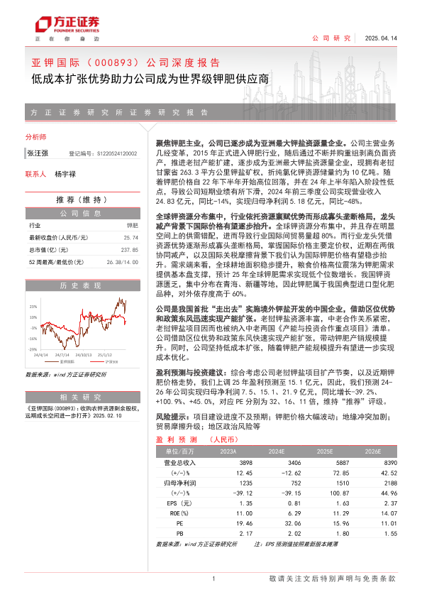 【方正证券】【20250414】亚钾国际(000893)公司深度报告:低成本扩张优势助力公司成为世界级钾肥供应商-23页