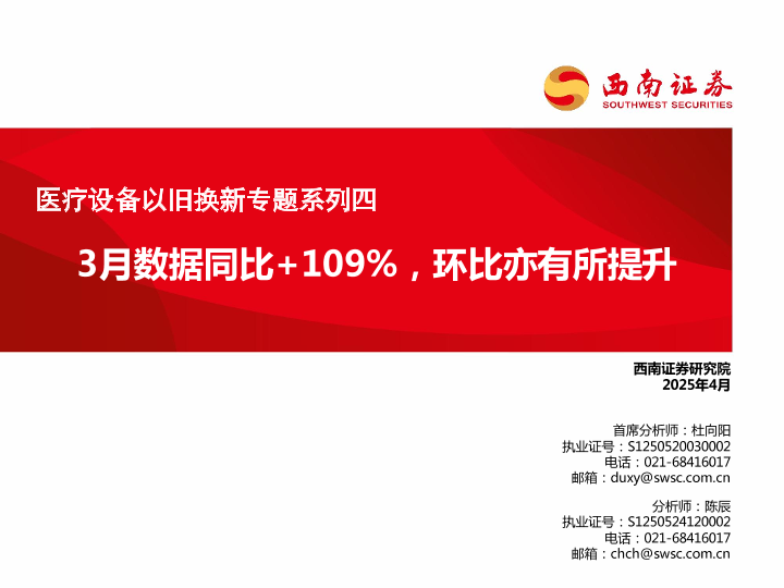 【西南证券】【202504】医疗设备行业以旧换新专题系列四:3月数据同比+109%,环比亦有所提升-21页