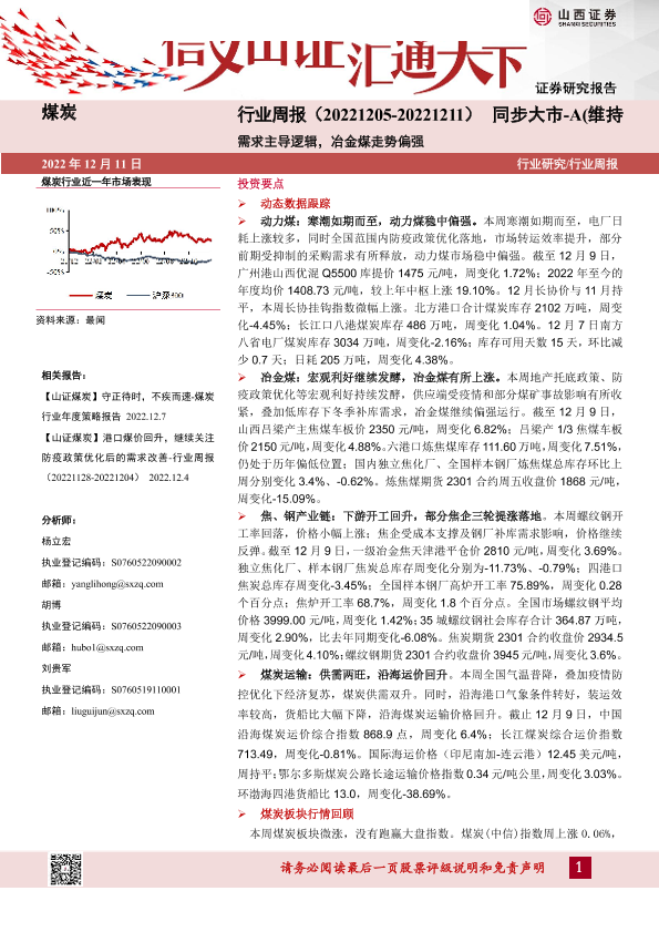 【山西证券】【20221211】煤炭行业周报:需求主导逻辑,冶金煤走势偏强-18页