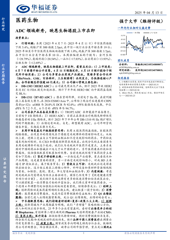 【华福证券】【20250413】医药生物行业定期报告:ADC领域新秀,映恩生物港股上市在即-29页