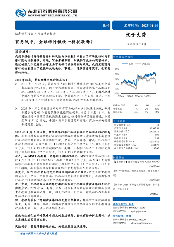 【东北证券】【20250414】贸易战中,全球银行板块一样抗跌吗?-11页