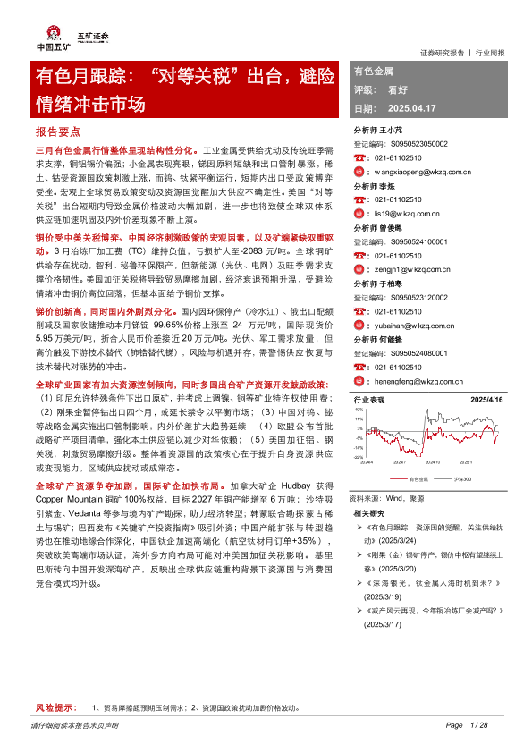 【五矿证券】【20250417】有色行业月跟踪:“对等关税”出台,避险情绪冲击市场-28页