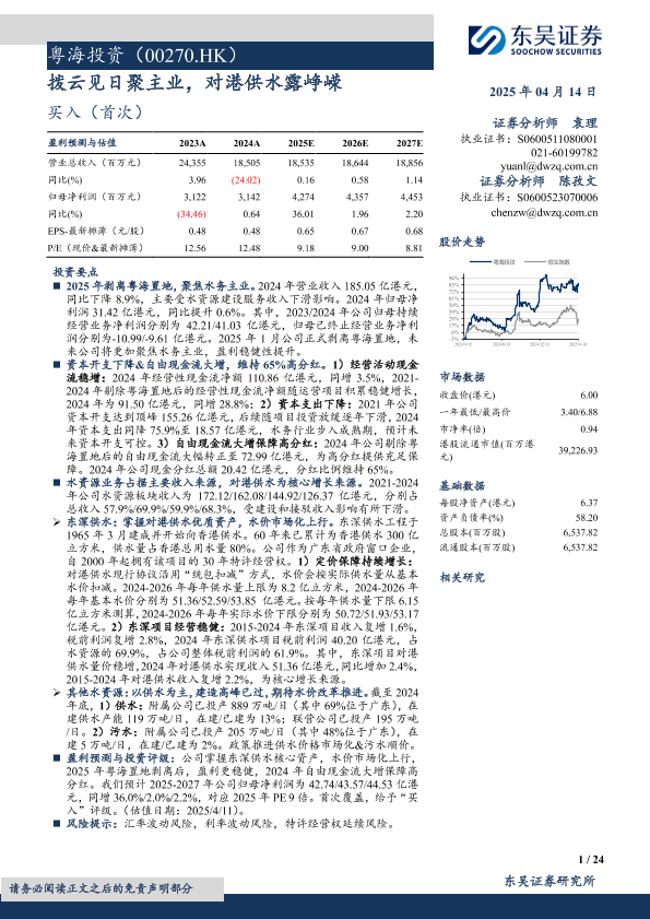 【东吴证券】【20250414】粤海投资(00270.HK)拨云见日聚主业,对港供水露峥嵘-24页