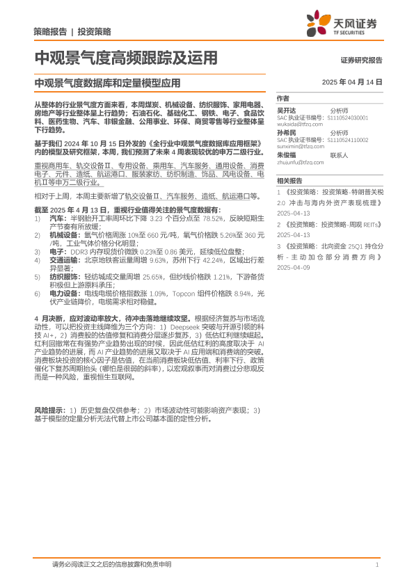 【天风证券】【20250414】中观景气度高频跟踪及运用:中观景气度数据库和定量模型应用-16页