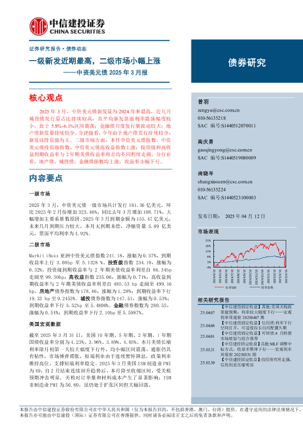 【中信建投证券】【20250412】中资美元债2025年3月报:一级新发近期最高,二级市场小幅上涨-14页