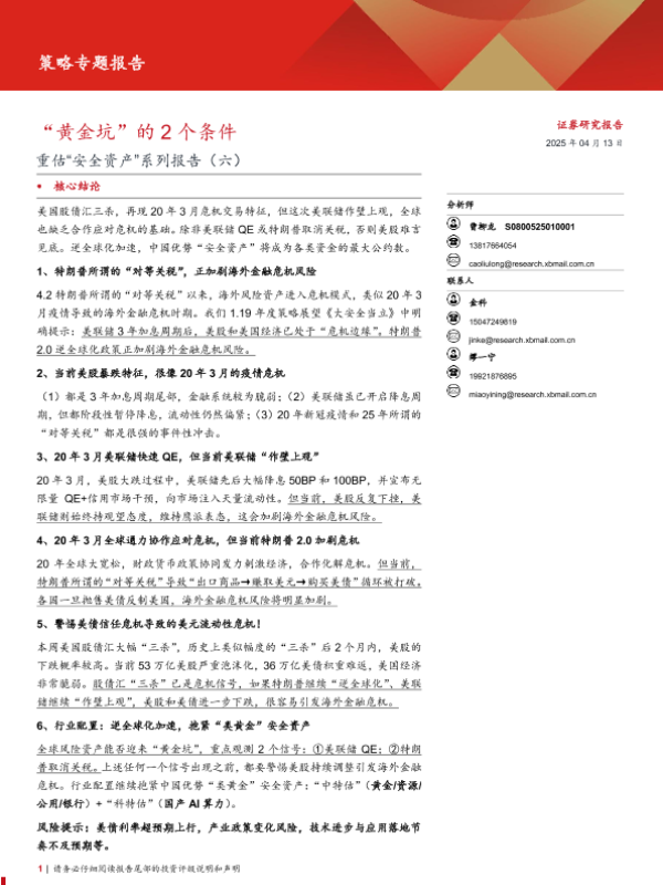 【西部证券】【20250413】重估“安全资产”系列报告(六):“黄金坑”的2个条件-19页