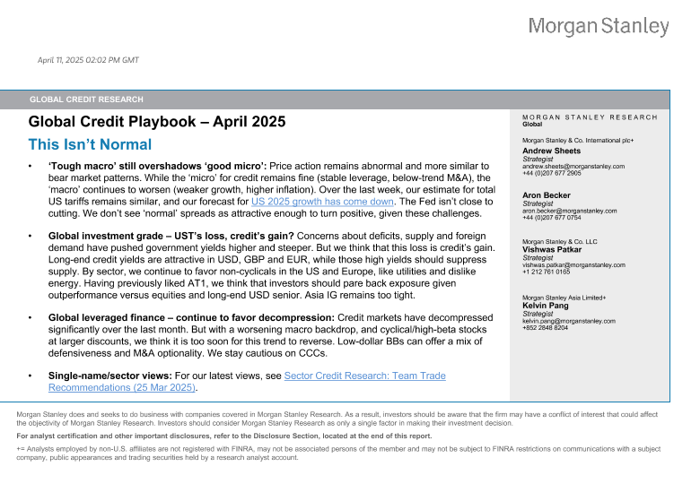 【Morgan Stanley】【202504】Global Credit Playbook – April 2025 This Isn’t Normal-41页