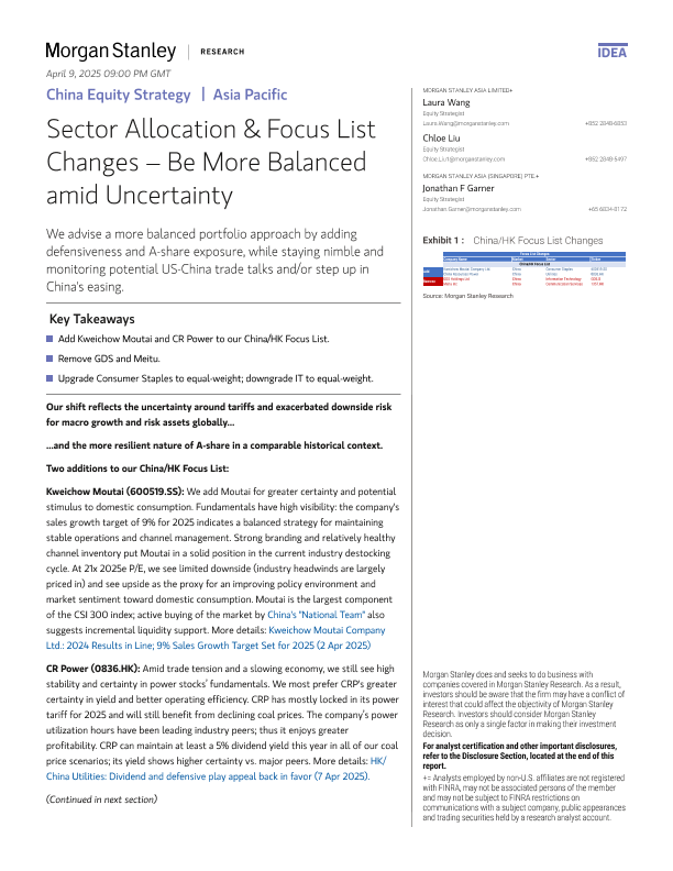 【Morgan Stanley】【202504】Sector Allocation & Focus List Changes – Be More Balanced amid Uncertainty-8页