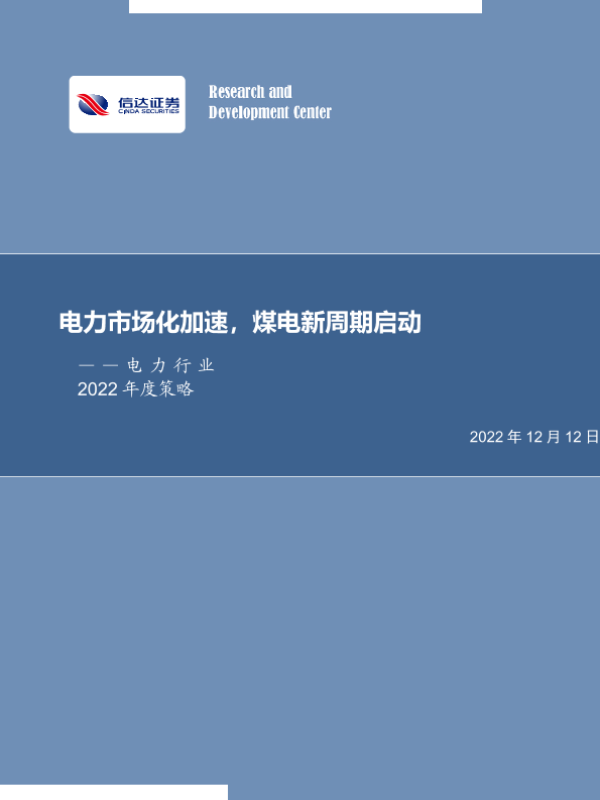 【信达证券】【20221212】电力行业2022年度策略:电力市场化加速,煤电新周期启动-30页