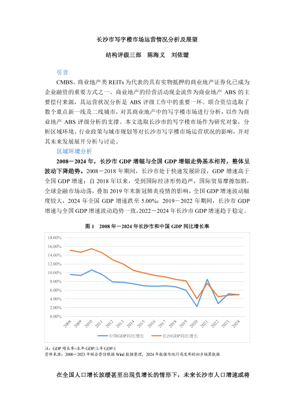 GDP增速 人口政策 写字楼市场 商业地产ABS 长沙经济发展