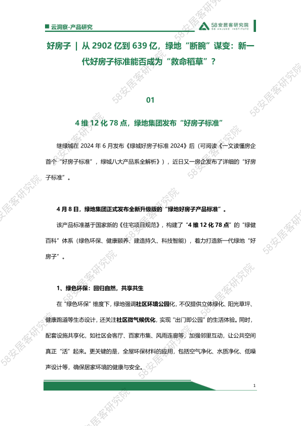 好房子标准 房地产 智能科技 环保健康 绿地集团