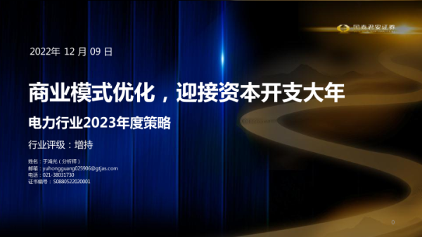 【国泰君安证券】【20221209】电力行业2023年度策略:商业模式优化,迎接资本开支大年-47页