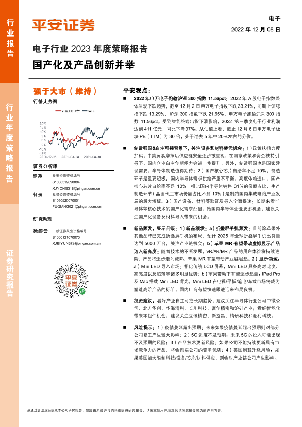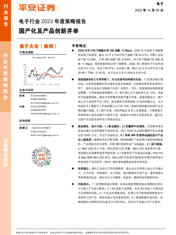 【平安证券】【20221208】电子行业2023年度策略报告:国产化及产品创新并举-37页