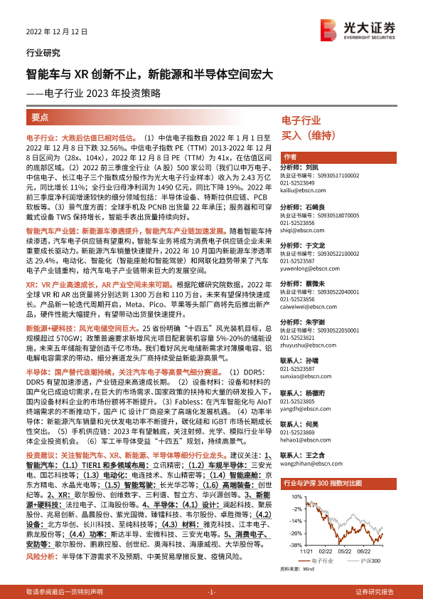 【光大证券】【20221212】电子行业2023年投资策略:智能车与XR创新不止,新能源和半导体空间宏大-55页