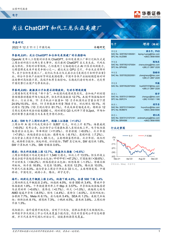 【华泰证券】【20221211】电子行业专题研究:关注ChatGPT和代工龙头在美建厂-26页