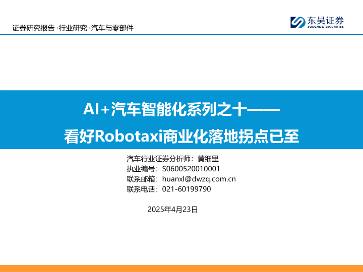 【东吴证券】【20250423】AI+汽车行业智能化系列之十:看好Robotaxi商业化落地拐点已至-56页