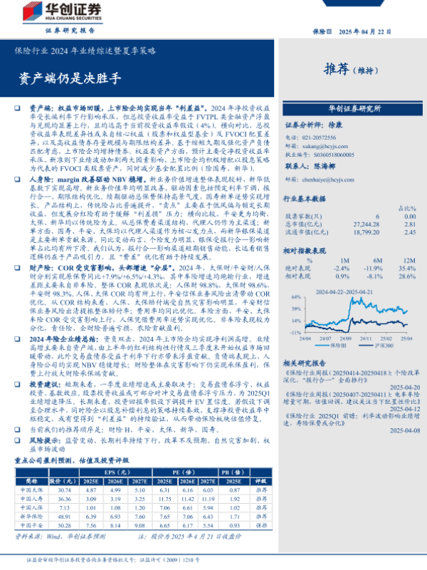 【华创证券】【20250422】保险行业2024年业绩综述暨夏季策略-22页