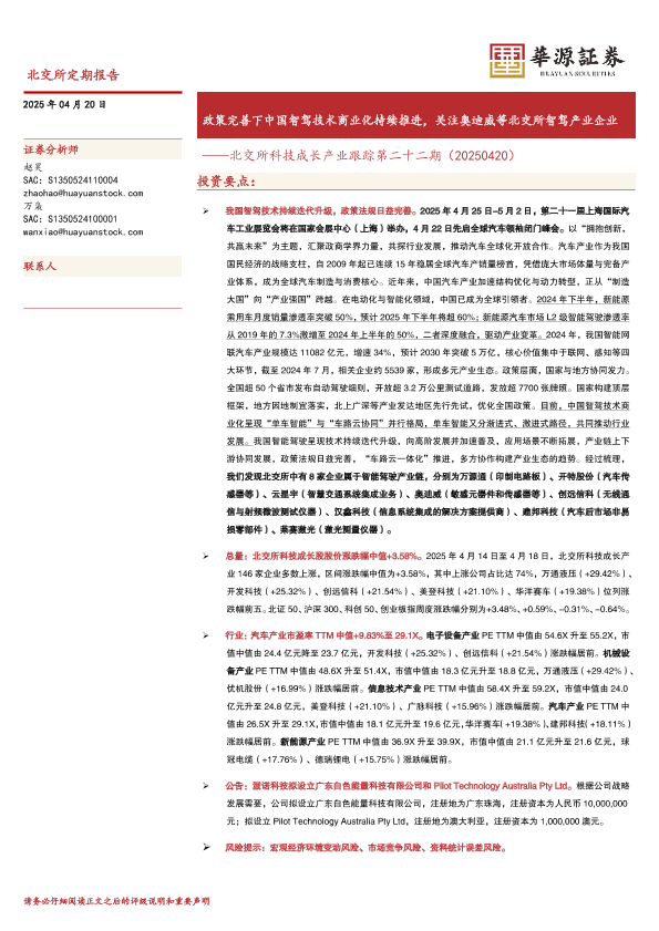 【华源证券】【20250420】北交所科技成长产业跟踪第二十二期:政策完善下中国智驾技术商业化持续推进,关注奥迪威等北交所智驾产业企业-17页