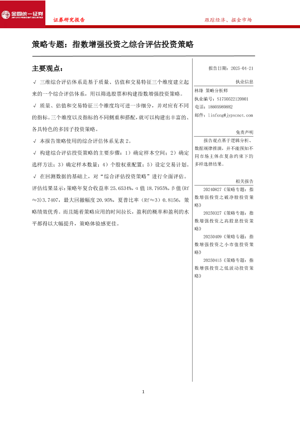 【金圆统一证券】【20250421】策略专题:指数增强投资之综合评估投资策略-16页
